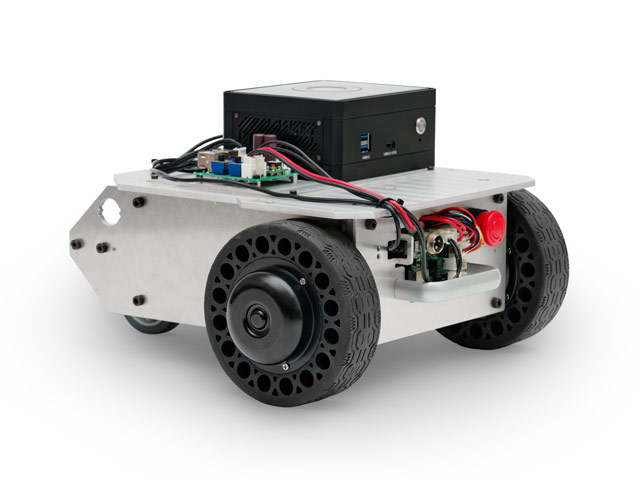 ヴイストン株式会社製の研究開発用大型台車ロボットをROSで制御するためには、UbuntuおよびROS環境を構築する必要があります。しかしLinuxやROSを初めて触る方にとっては、CUIが中心となるセットアップ作業は難しく、正しい環境構築が行われなかった場合ロボットは正常に動作しません。また、選択したPCとUbuntuやロボットとの相性が悪かった場合は、インストールや接続そのものがまったく成功しないこともあります。ROS PCオプション(NUC14)は、研究開発用台車ロボットで動作確認済みのPCに、必要な環境やサンプルプログラムをあらかじめセットアップしてあるため、簡単な接続操作のみでROSを使った制御に着手できます。